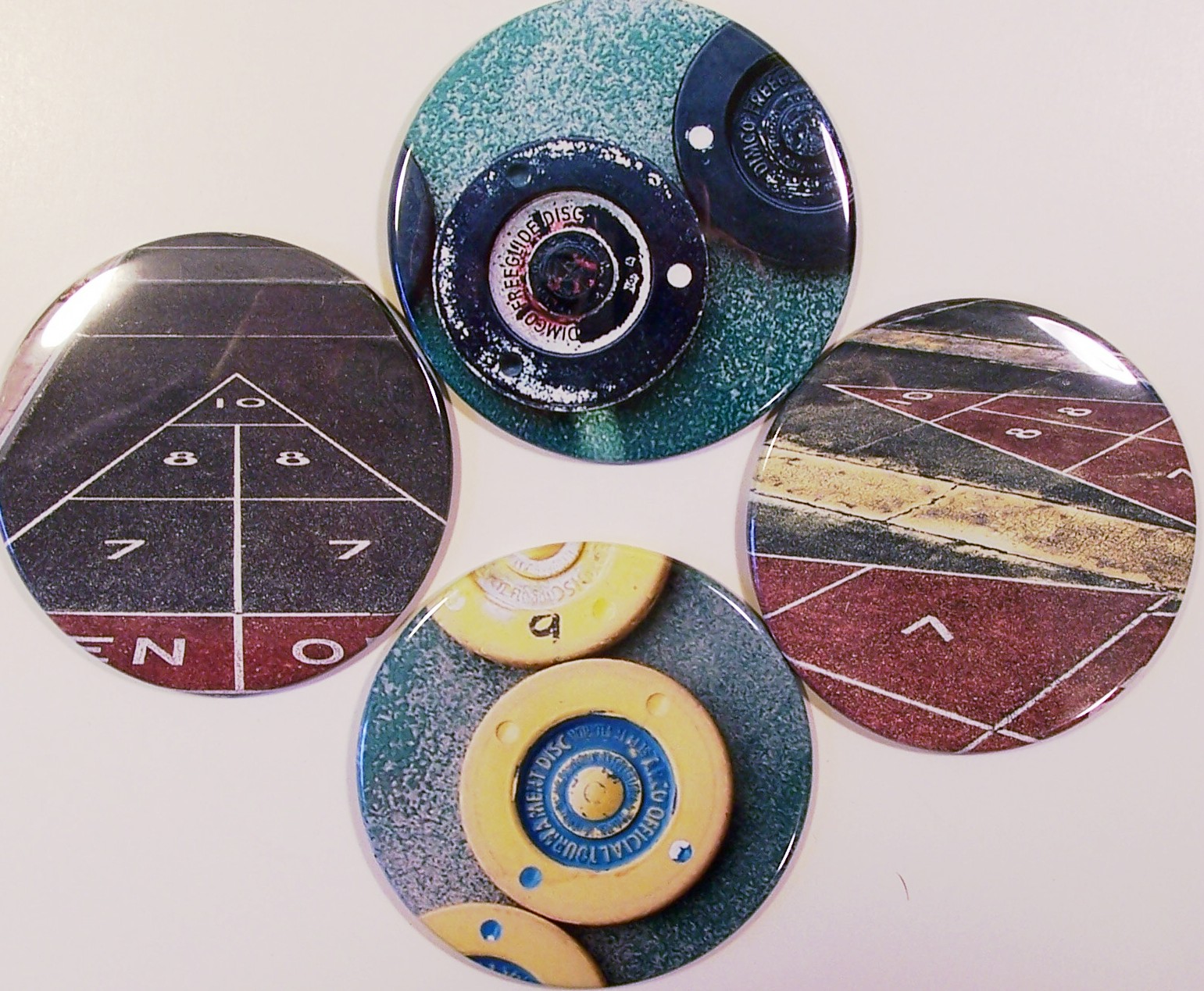 | | Promotional Buttons, Photo Magnets, Coaster Sets You can have custom made | | | buttons to promote your band or celebrate a family gathering, or custom made photo magnets of your newest family member, etc. How about sets of coasters or magents or pin buttons for your wedding or other party? Large 3 1/2 inch round format gets noticed and makes a great gift or souvenier! Just email a photo to the Hag and she'll do the rest!